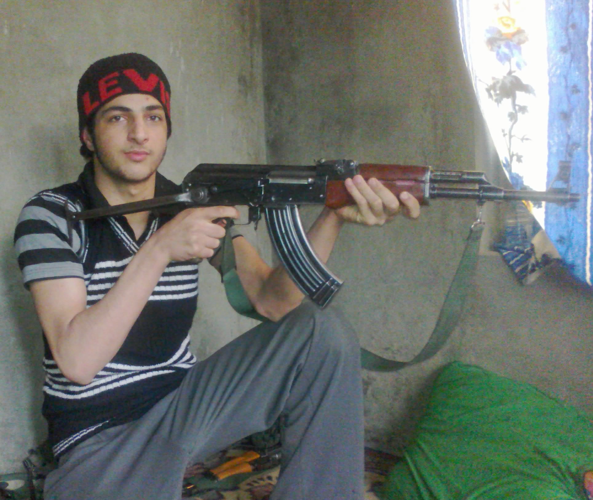 The first picture that was uploaded on the web showed a young smiling Burhan of 17 years of age with two AK-47 rifles in two hands and the third one slung across.